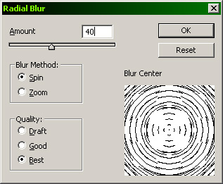 - From the FILTERS menu, choose BLUR > RADIAL BLUR ...